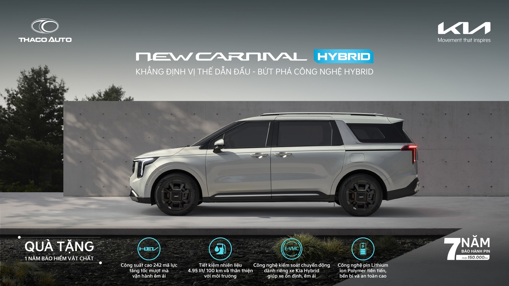 Trong tháng 3, phiên bản New Carnival Hybrid đang được THACO AUTO ưu đãi 1 năm bảo hiểm vật chất có thể quy đổi 20 triệu đồng.
