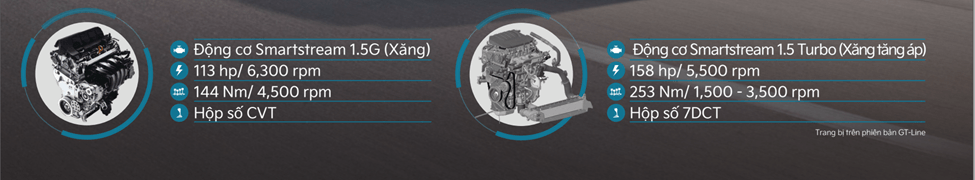 Đặc biệt, phiên bản Gt-Line sử dụng động cơ Smartstrem 1.5 Turbo, cùng với đó là hộp số li hợp kép DCT 7 cấp sản sinh ra 158 mã lực cùng 253Nm mô men xoắn. Hứa hẹn sẽ là một lựa chọn hấp dẫn cho khách hàng yêu thích sự mạnh mẽ.