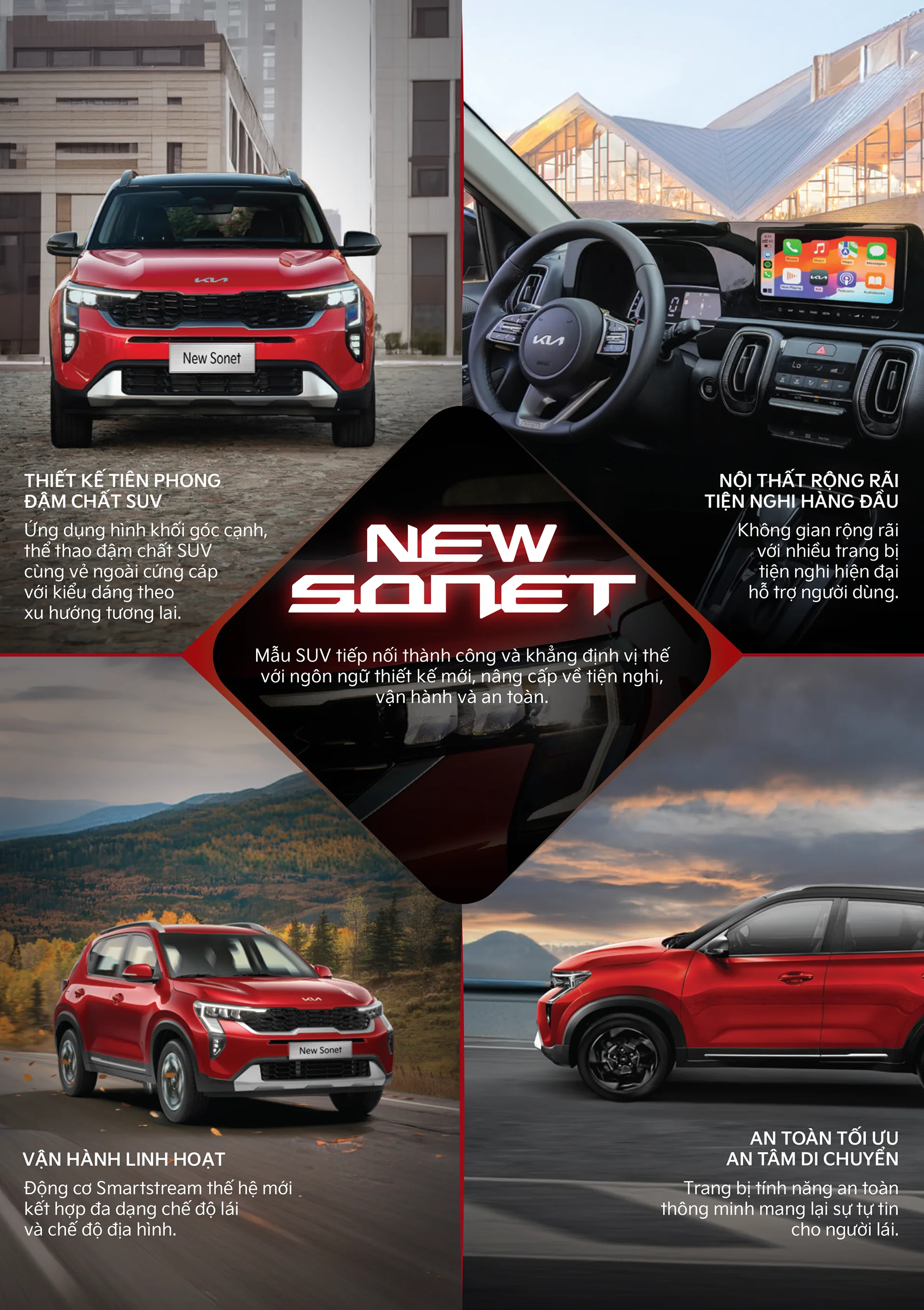 Với những thay đổi về kiểu dáng thiết kế, loạt tiện nghi, công nghệ mới, Kia New Sonet được kỳ vọng sẽ tiếp tục bứt phá, góp phần giữ vững vị thế và doanh số kỷ lục, mang đến thành công hơn nữa cho thương hiệu Kia trong thời gian tới.